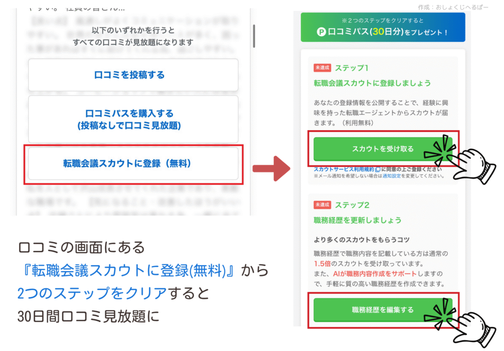 「課金はちょっと……」って人はスカウト登録や口コミ投稿をするのが断然ラクです。